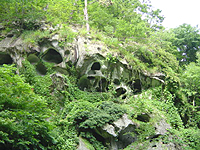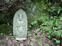 ![]() | こういう感じの仏像が、石段の横のあちこちにおいてあります。ちょっとヒンドゥー教的な感じのするものがおおいですね。 |