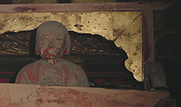 ![]() | 華蔵院の手前に物置のようになっているお堂があって、中を覗くと、この神様が強烈な存在感をはなっていました。 |