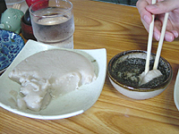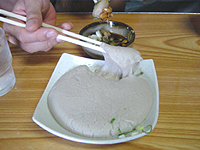 ![]() | これが「そばがき」。納豆と胡麻の2種類があります。 |