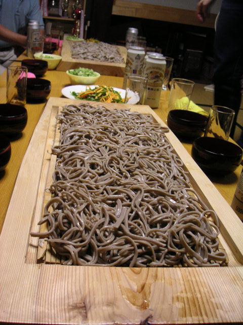 ![]() | 山盛りの蕎麦を目の前に、宴会スタートです。地元の方も10人ぐらい来て頂きました。 |