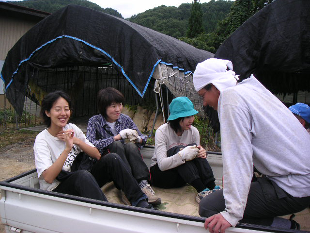 ![]() | 切る→まとめる→運ぶ→トラックの荷台に置く、の繰り返し。かなりの重労働です。農作業に参加するたびに思うけど、僕らはみんなでわいわいやるから楽しいけど、これを広い畑で一人でやるのは孤独な作業だなーと思います。 |