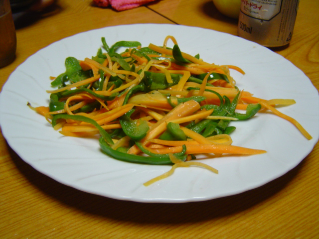 ![]() | ピーマンとにんじんの炒め物も。