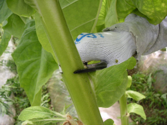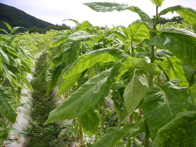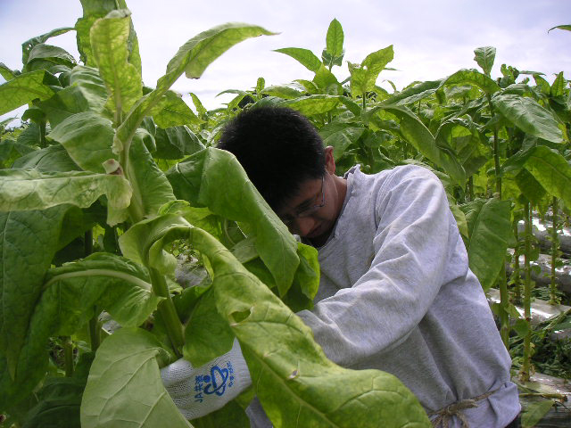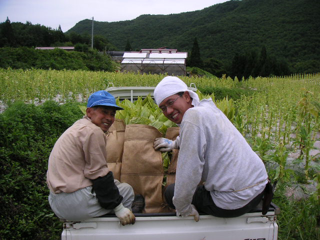 ![]() | 写真に写っている人は、今回お邪魔した平吹さん。 タバコは規制産業という事もあり、昔ほど厳しくはありませんが、今でも栽培本数まで管理されているそうです。 |