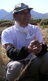 蔵王晴耕園: 漆山輝彦(60歳), 啓子(53歳) お米(ひとめぼれ・はえぬき・黒米・スノーパール),サクランボ,プラム,各種野菜(特にオススメはトウモロコシ・枝豆),干柿(つるし干柿・オリジナル「夢香姫-ゆめがき-」),漬物(おみ漬・やたら漬),12割米糀の手作り味噌 山形県上山市在住 我家のモットーは「晴耕雨食」。 晴れの日は、せっせと働いて、雨の日はのんびりと自家産の穫りたてのうまいもんをじっくりと味わいたいなぁ~と思いつつも、ぐうたらな百姓をしているので雨の日もドタバタと仕事に追っかけられています。 3人の子供達は、それぞれ独自路線で今のところ農業の後継者はおりません。農繁期には都会から帰って少し手伝います。 さて、そんな我家で、田舎時間の御一行3名様の農業体験をお引き受けすることになりました。 10月18日は久し振りの穏やかな良い天気となりました。余りにも良い天気なので急遽予定変更して、残っていた15a分の稲の脱穀作業をお手伝いしていただくことになりました。 気持ちの良い秋晴れで、正面の蔵王山は紅葉まっ盛り。絶好のロケーションながら、仕事の中身は相当に厳しい。唯一男性の貴山さんには稲杭から稲束をはずして脱穀機の台にのせてもらう仕事。2人の女性陣には脱穀した稲藁を20束ずつ一まとめにしてもらう仕事をお願いしました。機械の騒音と稲藁から出るほこりはかなりなもので、首すじにタオルを巻いて防備してもらいましたが、気温も高かったのでつらい作業だったと思います。イラっぽくてチクチクするこの感覚は体験したものにしかわからない!! こんな一生に一度かもしれない極めて貴重な(?)仕事を嬉々としてやってのけた御一行様に私達は完全に脱帽でした。都会育ちの皆さんがいつバテるかとハラハラしていた私達でしたが機械のベースに合わせて最後まで頑張って下さった皆様のお陰できちんときれいに仕事が片付きました。本当に感謝感謝でした。 今時の若いもん、なかなかやるじゃん。日本もまだまだ大丈夫かも。そんな思いを強く感じた嬉しく楽しい一日でした。 お茶やお昼の時間に色んなお話ができて久し振りに息子や娘達が帰ってきたような楽しい時間でした。大したおもてなしもできなかったのですが、皆さんが、美味しい美味しいと何でも食べて下さった事も気持ちの良い事でした。 農家の暮らしぶり、農作業のきつさ、農村のもつ豊かさ、それぞれに様々な思いや発見があった事と思います。でも、それは、ほんのわずかな一面にすぎないのです。これからも、どんどんお友達を誘って上山に遊びに来て下さい。毎回毎回、新しい出会いと発見があるはずです。それは私達にも言えることで、またお会いできる日を楽しみにまってます。 |