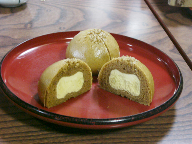 ![]() ![]() | そばとそばまんじゅうが登場。そばは100%そば粉、つなぎなし。コシも香りも味もそこらへんの蕎麦とは比べ物になりまへん。饅頭もプリンとしてておいしかったぁ。