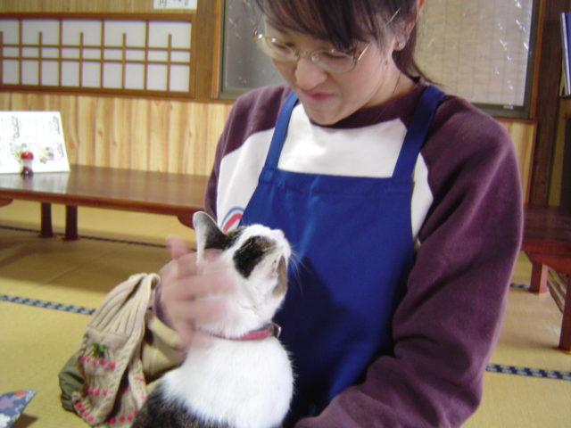 ![]() | 注文して食事を待ってたら、猫が近づいてきて参加者の懐にもぐりこんできた。