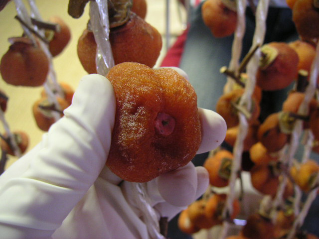 ![]() | この紅柿はこする前から白粉が少し出ていますね。 |