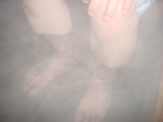 ![]() | この日はどういう加減か、時折スーパー熱いお湯が追加されて、その度に足をあげないと耐えられません。 |