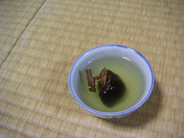 ![]() | 宿に戻って、北澤さん班が聞いた「固くなってしまった干柿は、お茶につけて戻す」というのを実践してみました。 すごくまずそう... |