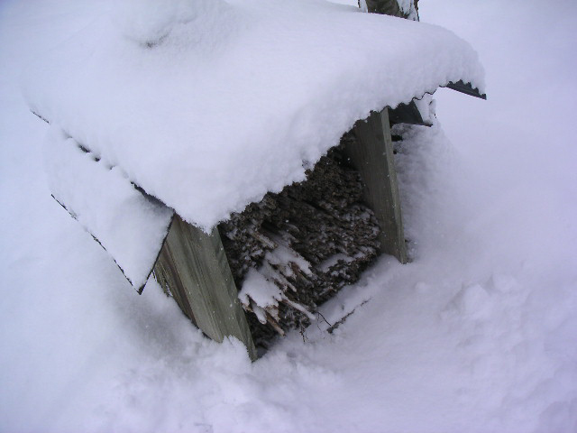 ![]() | 「枝拾い」とは、「剪定」した枝を拾い集める作業で、とっても地味で単純ですが、これも立派な農作業です。でも、こんな雪に埋もれてしまっては「枝拾い」というより「枝探し」。 |
