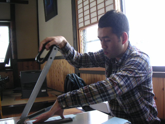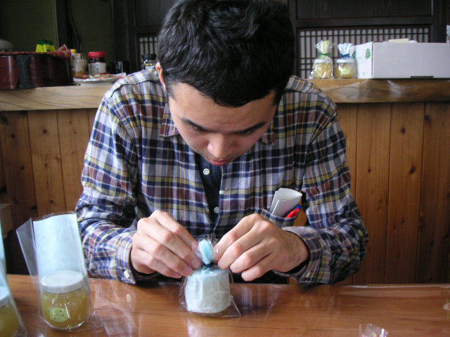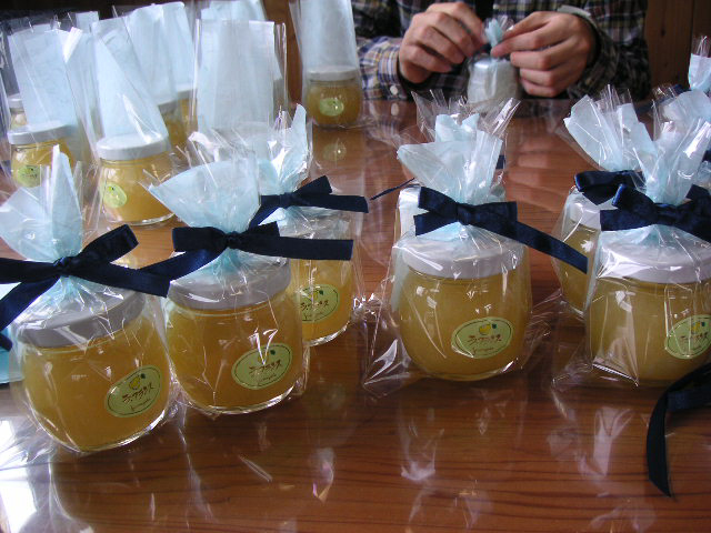 ![]() | 外は雪が降って作業ができないので自家製ジャムの袋詰め作業をしました。まずはラベル貼り |