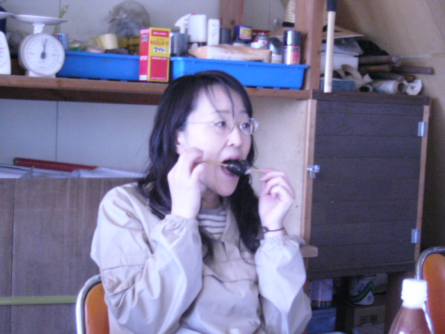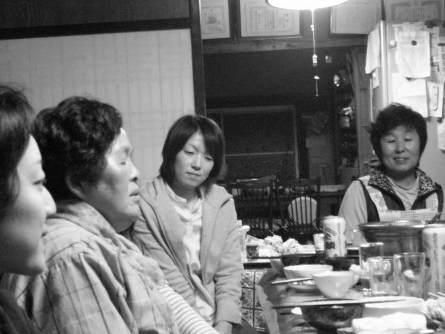 | 時間が進んでいくにつれ徐々にみな打ち解けていった。冨士さんのお母さんは肝っ玉母さんという感じではないが、いつもテキパキと座を仕切り、一家はお母さんを中心に回っているように思えた。 | ![]() ![]() |