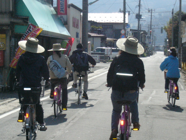 | サイクリングの目的地は萱滝。途中、ラフランスのソフトクリームを食べてから萱滝まで向かい、帰りは「原口そば」という有名蕎麦店で昼食をとり、その後時間があれば斉藤茂吉記念館に向かうという道程。全部で20km以上はあるだろうか。なにはともあれ、我々は貴山さんを先頭にして出発した。 | ![]() |