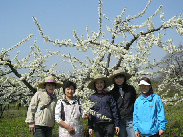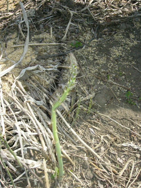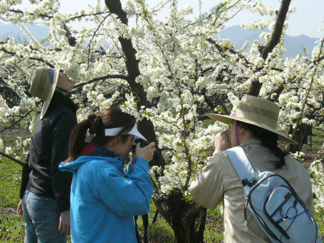 | お母さんが強く勧めるだけあり、満開のすももは見事だった。写真などを撮っているとどこからか「アスパラだ」という声が上がった。なんと野生のアスパラが無造作に生えているのだった。 「ああ、アスパラは多年草だからね。抜いてあげないとどんどん育っていっちゃうのよ」 どこまでもリアルにお母さんが言った。 |