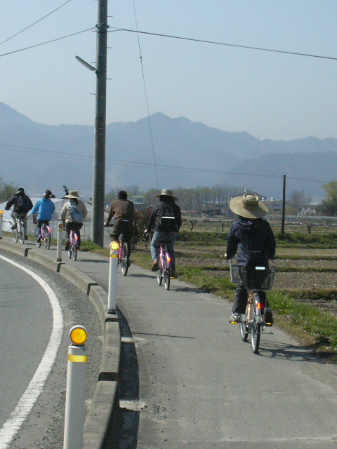 そこからしばらく走ると「あとはもうずっと真っ直ぐだから」と貴山さんが告げ、後は各々自分のペースで漕ぐ。ただただ自転車を漕ぐだけの作業。時折近くの人と言葉を交わすこともあるが、基本的には自分で漕いでいくだけ。それでも退屈どころか非常に気持ちの好い時間が過ぎていく。それが澄み渡ったアウトドア日和の空によるものなのか周囲の大自然によるものなのかわからないが、とにかくそのような環境の中ペダルを踏み続けていると日常の一切の些事から解放されている自分に気付く。 自分がここで自転車を漕いでいること、目の前を他の参加者が走っていること、太陽が大きく優しく輝いていること、木蓮が大輪の花をさかせていること。それらの一切喝采がすべて至極自然なことのように感じられる。調和。サイクリングも馬鹿にしたものではない。 |