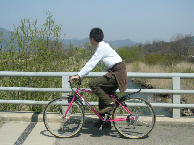| 途中川を渡ったり、畑を横切りながらどんどん進んでいく。すれ違う人たちとは自然と「こんにちは」と挨拶を交わす。畑の横の坂を立ち漕ぎしていると、農作業をしているおじさんから「頑張れ」と声をかけられる。昔は冷たくて人情がないと思っていた東京にいつの間に慣れきってしまっていた自分に気付く。ペダルを漕ぐ。 | ![]() |