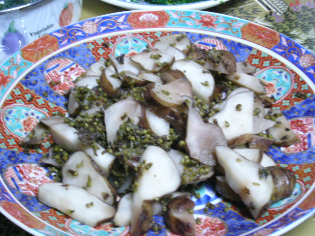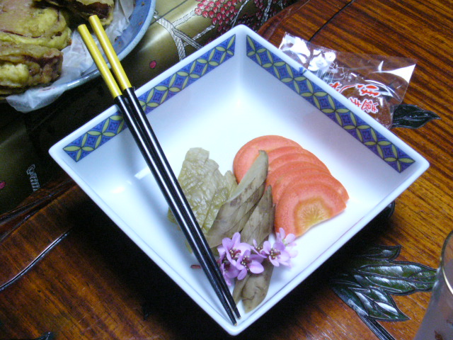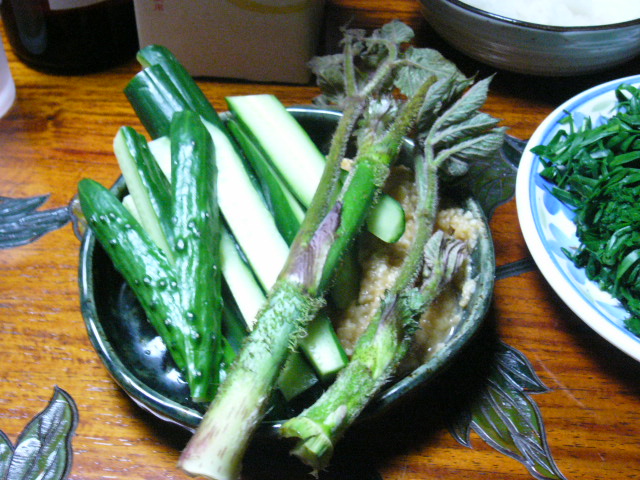 | 実は午前中も胡瓜の浅漬けを出してもらっていた。胡瓜は牛蒡と並んで上山市の名産。浅漬けをつまみながら「本当はもぎたてを齧るとおいしんだけどね」というのを聞いていた鏡さんの奥さんが用意してくれたようだ。 | ![]() |