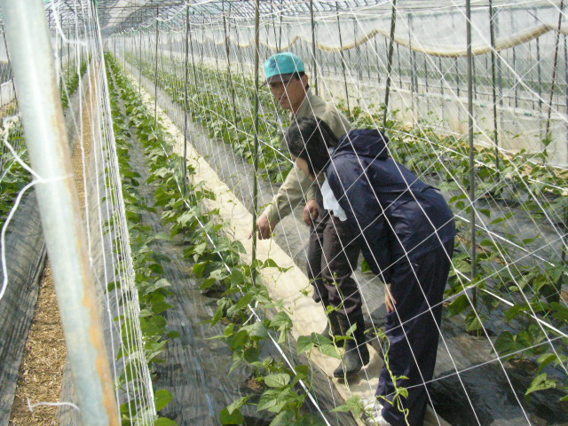 | 「やっぱり胡瓜とかぶどうは作るのが大変だからね。ぶどうなんかは一房、一房液につけて、カバーしてあげないと駄目だしね」 |