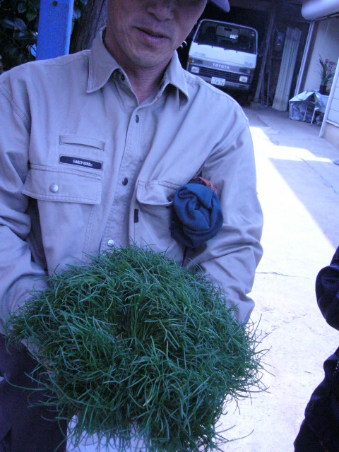 左手の人差し指で穴を開け、そしてピンセットで摘んだ苗を植える。この繰り返し。気付けば自分の作業の効率が上がっていることに気付く。それにしても全部で3万本も植えるのは気の遠くなるような作業だ。鏡さんの側らでは奥さんが黙々と定植を手伝っている。 やはり大変で人手のかかる作業なので、自然奥さんも手伝う。またどこの家庭でも子供たちもある程度の年齢になれば当然手伝うようになるだろう。家族が糧を得ていくために協力し合って生きていく。なんだかものすごく自然なことのように思えた。私の生活にはないリアルさに気付かされ私は少したじろいだ。生きる、ということを再考させられる。このプログラムは思いがけず大きなものを私に残してくれた。 |