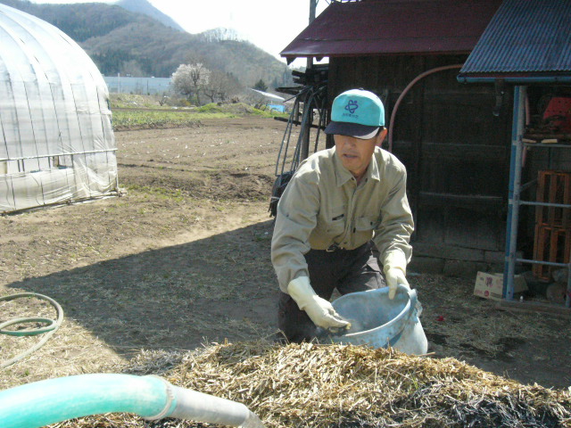 藁をひっくり返している小一時間は鏡さんと色々な話をすることのできるひと時でもあった。彼は野菜や花の単価や作成コストなどビジネスとしての農業などのことにまで及んで色々と話してくれた。話が息子さんに及んだとき、鏡さんはどこか達観したような表情を見せた。息子さんは現在自分で別の仕事を営んでおり、目下家を継ぐかどうかは不明だという。 「農業は大変だし、農業のこの面白さっていうのは実際にやってみないとわからないからね」 |