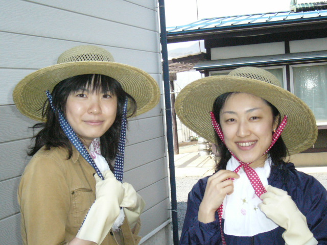 | 鏡さんのお宅に戻ると、鏡さんは皆に用意してくれていたビニール手袋と一緒に私にはゴム製の長靴を用意してくれていた。そして女性陣には100円ショップで買ったという麦わら帽子を日焼け防止に配ってくれた。 | ![]() |