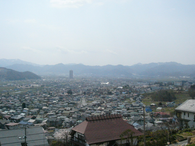 | 丘からは確かに上山市が一望できた。正面の蔵王を中心に市は四方きれいに山々に囲まれた盆地をなしていた。蔵王のゲレンデ、遊園地のリナワールド、地元のワイン工場、斉藤茂吉記念館、そして市街地。次々と指差しながら鏡さんは説明をしてくれた。 | ![]() |