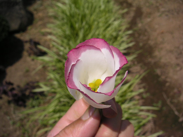![]() ![]() | トルコギキョウという花は何百種類もあって、花の色も紫から赤からピンクまで、花びらの開き方も、柔らかさも違います。鏡さんが栽培している種類もいくつかありますが、僕はこれが一番好き。 |