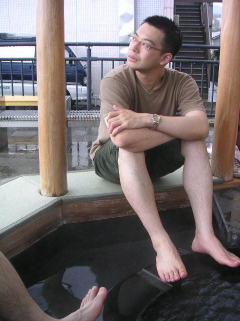 ![]() | 天気予報は曇りだったので、とりあえず宿を出たのはいいものの、雨が止まないのでとりあえず足湯で一休み。あまりにも熱くて足を入れることができずちっとも温まりません。 |