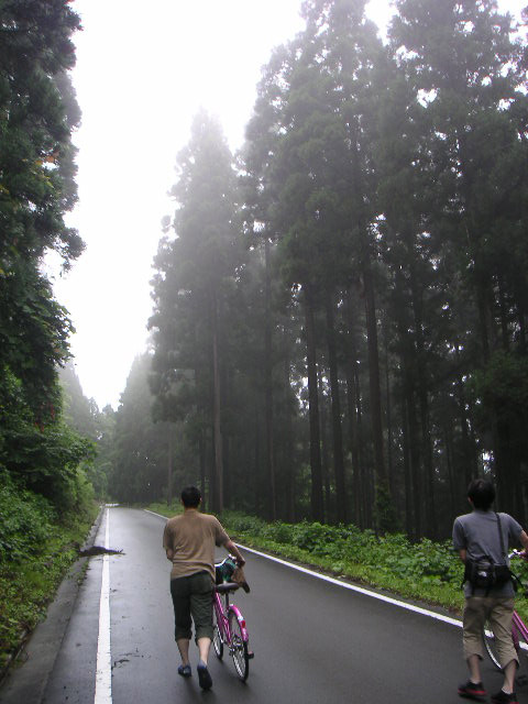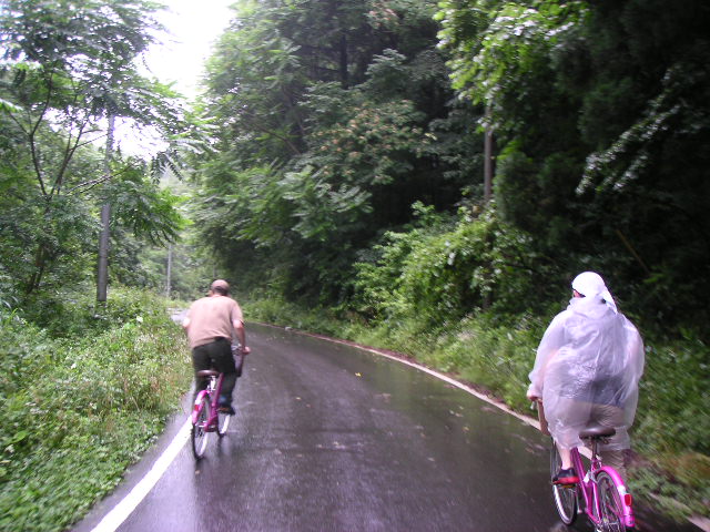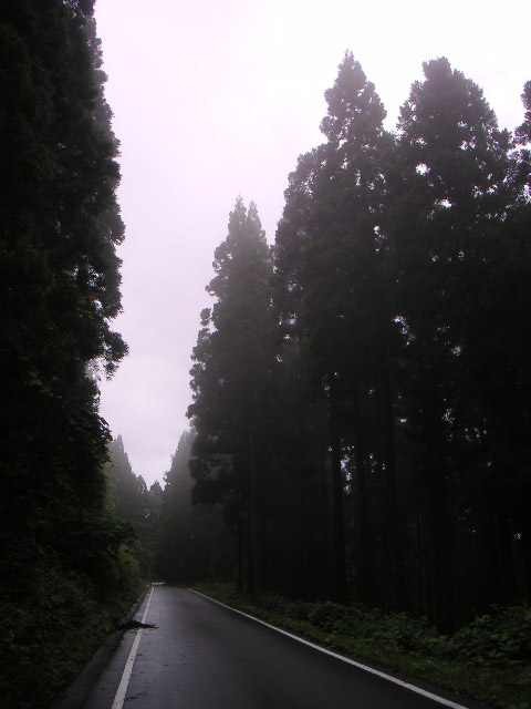 ![]() | この辺りから、本格的な上りがスタート。読み通り、山に入ってきたら雨があがりました。 |