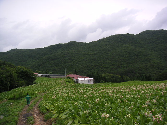 ![]() ![]() | 平吹さんのタバコ畑。タバコの花が満開です。 |