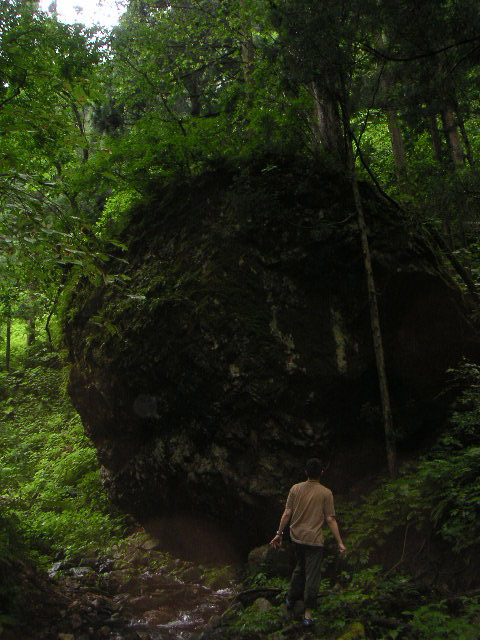 ![]() | この大岩のさらに2~300mぐらい奥にある滝が今日のゴールなので、さらに奥に進みます。 |