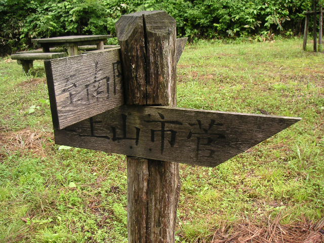 ![]() | 左に進むと南陽地区。ここもまっすぐ進みます。ここまで来たら、後は菅(すげ)まで下りだけ。 |