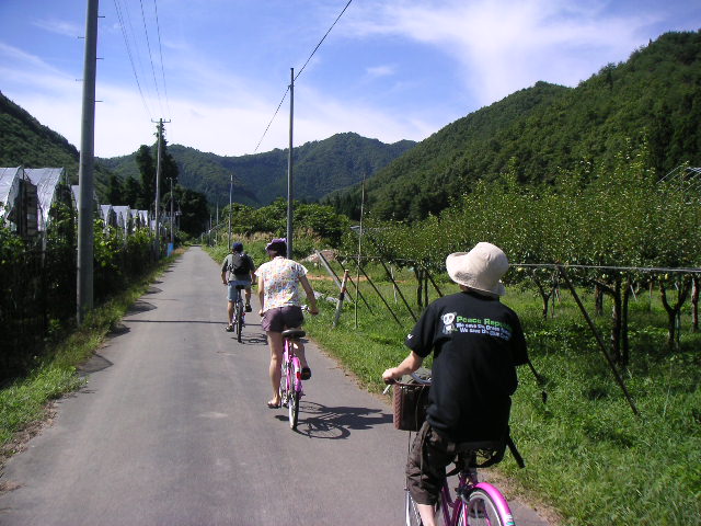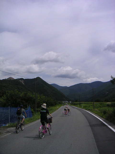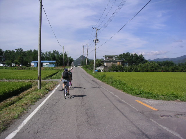 ![]() ![]() | 田んぼと畑の中をもりもり進む自転車。 |