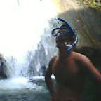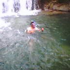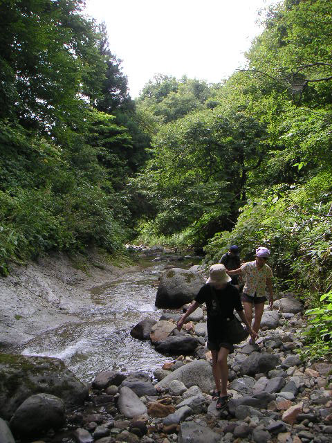 ![]() ![]() | ここが一番の難所でした。おへそぐらいの深さ。この写真を撮ってから、僕もじゃぶじゃぶ進んだのですが、うっかりポケットにデジカメを入れたまま進んでしまい、すぐに気付いて取り出したけど、冷たい山の水に浸かったカメラはうんともすんとも言いませんでした。東京に帰ってから修理に出したら「修理不能」という回答が... |