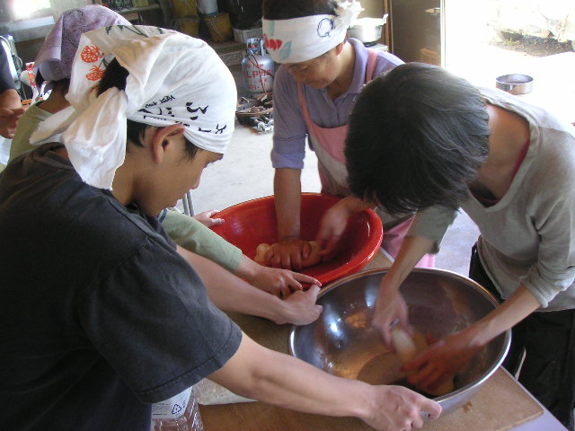 ![]() | とれたての野菜たっぷりのバーベキューにお腹いっぱいで動けなくなった頃、炊きっぱなしで忘れていた御飯を発見。忘れてたねー、という一言で終わると思いきや、「食べてケー。」という長沼さんのお母さんの一言にショック。でも食べてみてやっぱり美味しい! なんと田舎時間で何度もお世話になってる北澤正樹さんの田んぼで作った『燕米』でした。 北澤正樹さんのところの様子。→ 2004年5月,2004年3月,2003年7月,2003年3月 |