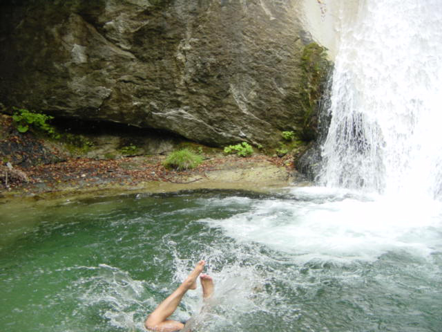 ![]() | 最初から泳ごうと思って行ったわけではないので、水着は持ってませんでしたが、あまりの魅力に抗しがたく、気づいたら飛び込んでいました。 |