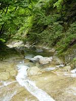 ![]() | ひたすら登り。ヒールのある靴では無理です。萱滝はニッポン国古屋敷村(現在は営業していません)からさらに20分ぐらい厳しい登りです。 |