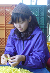 ![]() | 加多駄 智子(かただ ともこ) 24歳,女性,会社員,東京都在住 去年の10月にお邪魔したのが初めて。気づけばこの一年で、4回目の上山帰省になります。わぁ、そんなに来てたんだぁと思う気持ちと、これをとても自然なこととして受けとめている気持ちが半々です。 東京はざんざん降りの雨で、私たちは台風の先を行くように上山にやってきました。ビルの中で働いていると、天気なんて知ったことじゃなくて、通勤とお昼休みに「うわぁ、雨だよ。めんどくさ~」って、雨に対する感情って、こんなものです。だけど(当たり前だけど)、農業は天候に左右されるものであり、今回はずぶぬれになってどんな作業があるのだろうと、ちとドキドキしていました。 させていただいた作業は、菊のちらし方。ビニールハウスの中の菊を、花だけもぎ取って、最期に花びらをぐるっととっていく。きれいだし、いい匂いのする、優雅で気持ちのいい作業でした。(私のちらし速度では、嫁には行けないそうですが。。。) 新米おにぎりのおいしーい昼ご飯後は、ビニールハウスの張替え?とさといも掘り。(さといもには、びっくり!親芋の存在を始めて知りました。煮るとちょっと紫がかるこの部分がほくほくしてこんなにおいしいなんて、知りませんでした。うーん、もったいないことしてたなぁ。) そして夜は楢下の方々と大黒屋で宴会。いろりを囲んでのみんなでワイワイの食事は心がわくわくします。野菜がつやつやぴちぴち光っていて、おもちはもちもちとどこまでもおいしく(お腹が苦しいのに手が伸びる。。。)、みんなの顔がにこにこしていて。 しかし、今回はこの天候を恨みました。農業は自然相手で、天候に左右されるもの。自然のリズムに合わせて何かもっと別の形でお手伝いをできたのではないかと。やはり「お客様」になってしまったなぁと。 という気持ちも持ちつつ、私はまた上山に行きたいと思っているのです。 知らないこと、教えてください。こき使ってください。これからも、いろんな表情を見せてください。それでは、また。ありがとうございました。 |