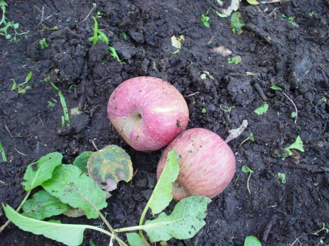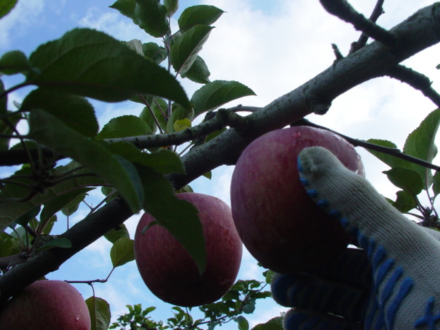 ![]() | 地面に落としてしまったリンゴはたとえきれいなものでも収穫はできません。落とさないように慎重にもぎます。 |