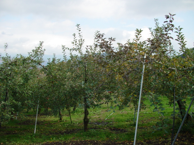 ![]() | もいだあとのリンゴの木。人数が多かったおかげか結構早いペースでもいでいきます。 |