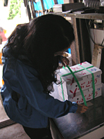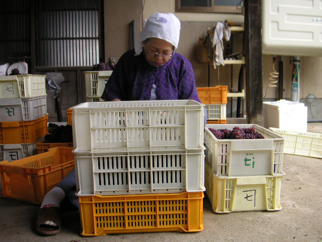 ![]() | 全部収穫してから、まとめて仕分けして、箱詰めできればもっと効率的ですが、一つ一つの房の成長にあわせて収穫しなければならないので大変。 |