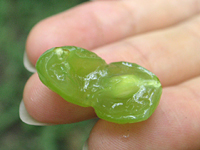 ![]() | こういう緑色の粒は、種ナシにするなんとか液がつかなかったもので、中をあけると、ちゃんと種が。 |