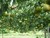 いつの間にか雨もあがり、太陽が出てきました。とたんに暖かくなります。面白いことに、同じ木でも枝によって実の大きさがぜんぜん違います。枝の生命力によるんだとか。 |