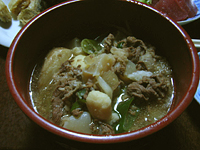 山形名物、「芋煮」。この里芋がたまらなくとろりとしていて絶品。 |