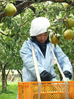 今回はラ・フランスの収穫。ラ・フランスの収穫は10月中旬から下旬が最盛期。かみのやまではこの時期、ほんとうに至るところで収穫していました。 |
