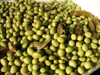 この大豆、ただの豆じゃありません。無農薬の「秘伝豆」です。あのすっかり有名になった「だだちゃ豆」にも負けない香りと風味。 ちなみに、「だだちゃ豆」は確かに美味しいけど、あの地域で作るから美味しいんであって、違う地域で作ってもイマイチな味になっちゃう、なんでもそうで、有名な品種だったらいいっていうわけじゃない、消費者も勉強しないとイカンだべ、というお話をお伺いして、ナルホドと感心。 |