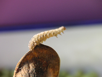 ![]() | 無農薬なんだからイモムシだっています。ちなみに、虫がついてて葉っぱに穴があいているから安心っていうのは必ずしも正しくなくて、強い野菜には虫がつきにくい、っていう話をお伺いして、またナルホドと感心。 |