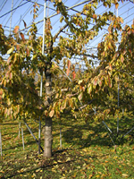 ![]() | 漆山さんのところで、とりあえず柿。普通の柿じゃなくて、渋柿を焼酎でシブ抜きしたもの。 シブ抜きしてる途中のも見せてもらえばよかった。 ちなみに、渋味のもとは、タンニンという物質。渋柿をアルコールに漬けると、アルコールが酸化されてアセトアルデヒドに → アセトアルデヒドがタンニンを酸化させる酵素の働きを活発に → タンニンが不溶性になって溶け出さなくなる=渋味がなくなるわけです。 |