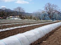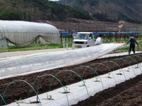 植え終わった後の畑の全景。 お天気に恵まれ、トンネル作りまで全て終えられました。 |