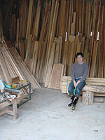 ![]() | 林業組合の事務所兼工場に戻って、原木へのコマ打ちです。 |